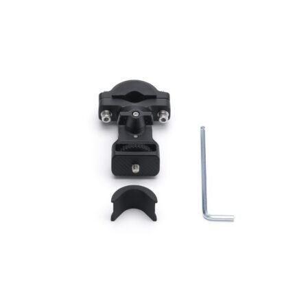 Soporte tipo abrazadera DJI para selfie stick, ideal para grabaciones en movimiento. Fijación segura y estable, incluye espaciador de silicona. Compatible con Osmo 360.